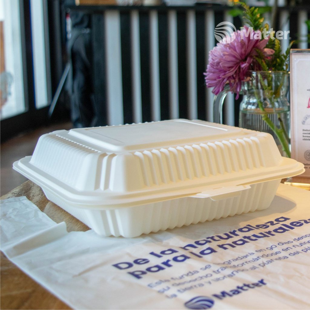 El bagazo de caña es el residuo del proceso de fabricación del azúcar, es lo que queda de los tallos de la caña después de extraer el jugo azucarado. Este residuo se utiliza para la producción de envases ecológicos, ya que no es tóxico ni para los seres humanos ni para el medio ambiente. Su componente natural permite que estos envases para alimentos tengan buenas propiedades mecánicas, son rígidos y resistentes, soportan temperaturas calientes sin deformarse y no permiten que el líquido se vierta.